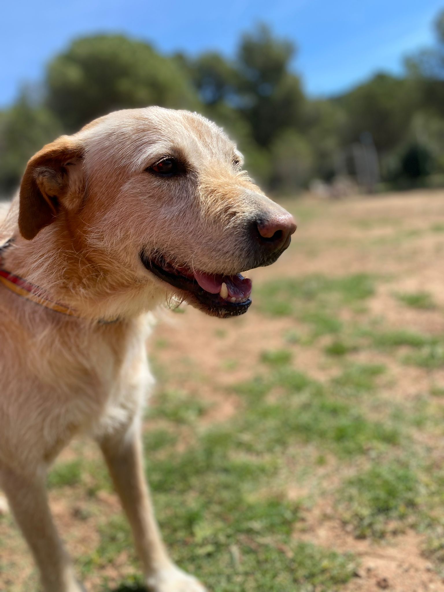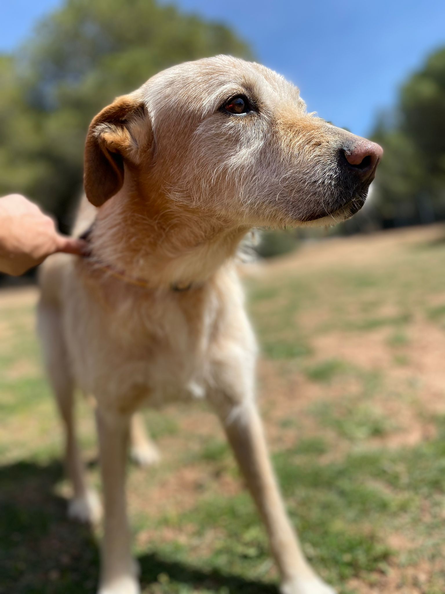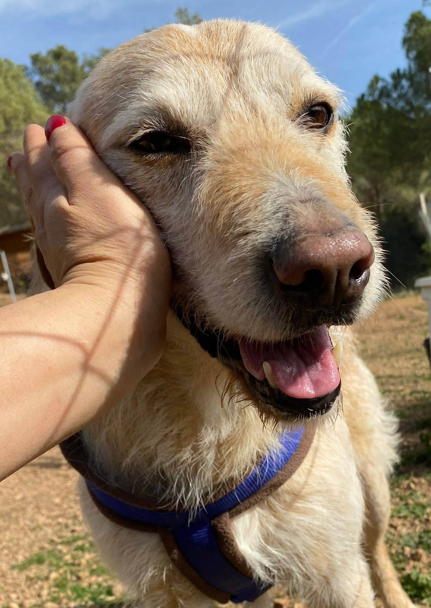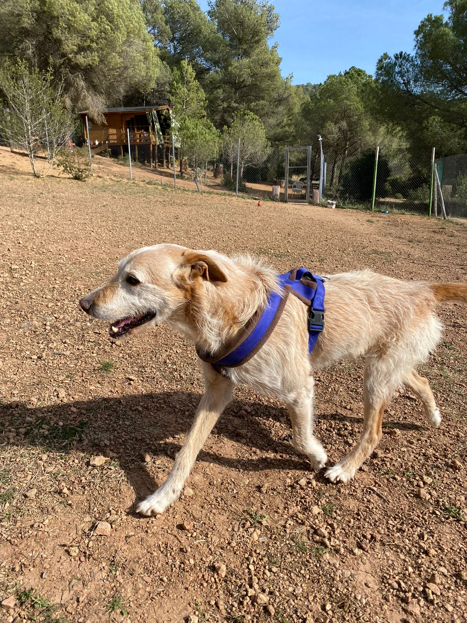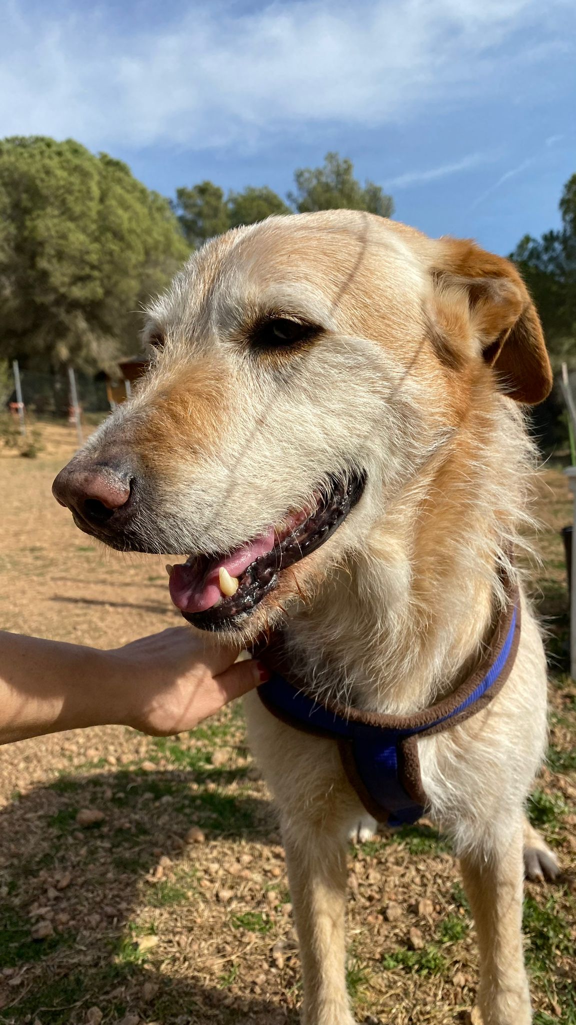 Té uns 6-7 anys, és un bon gos, obedient, li encanta passejar tranquil i es porta genial amb altres gossos al refugi conviu amb uns quants.